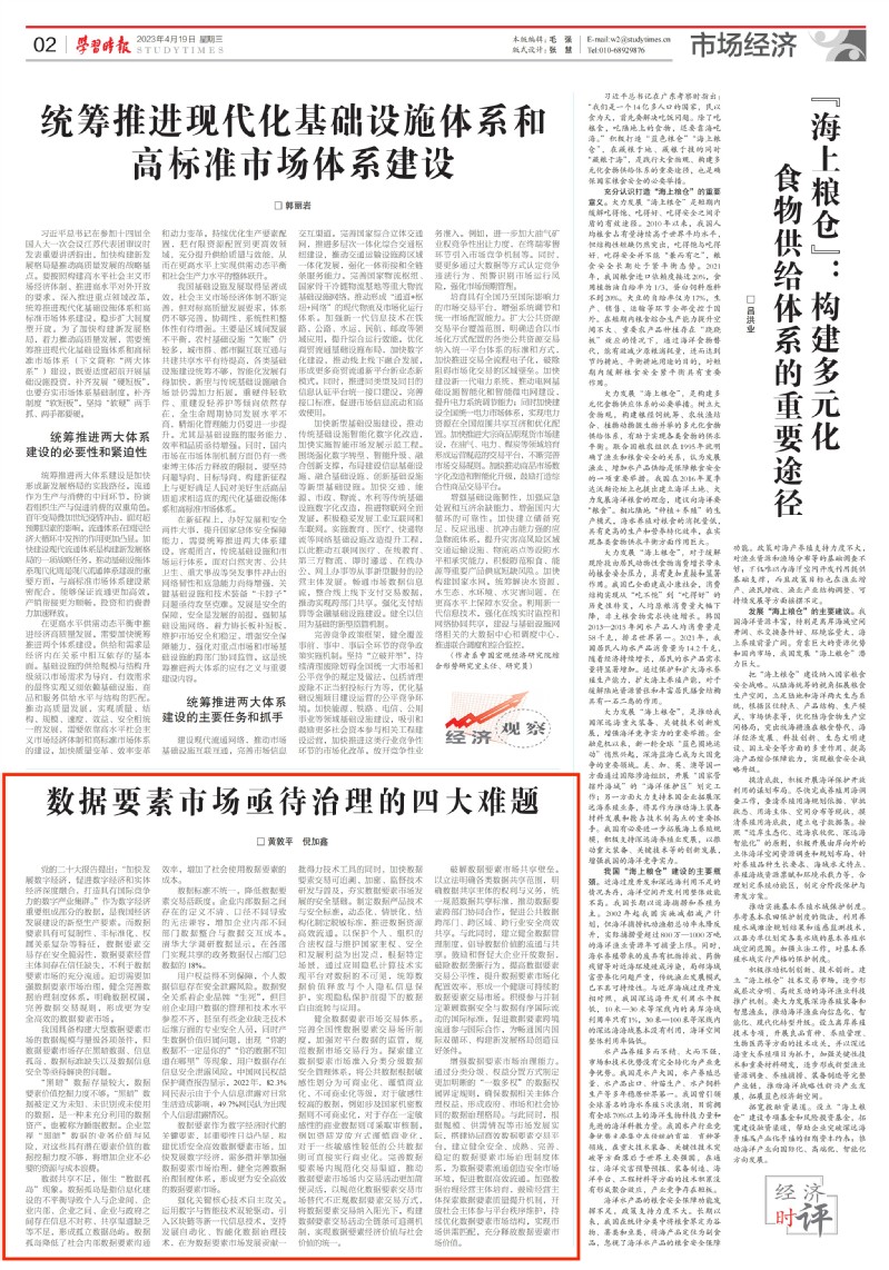 《学习时报》2023年4月19日第2版刊发了我校经济学院黄敦平副教授的理论文章《数据要素市场亟待治理的四大难题》。现将全文转载如下: