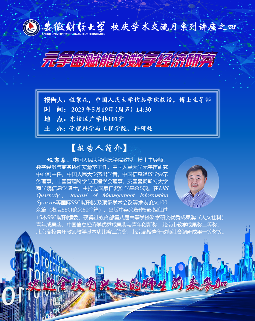 2023年5月19日:【校庆学术交流月系列讲座之四】元宇宙赋能的数字经济研究