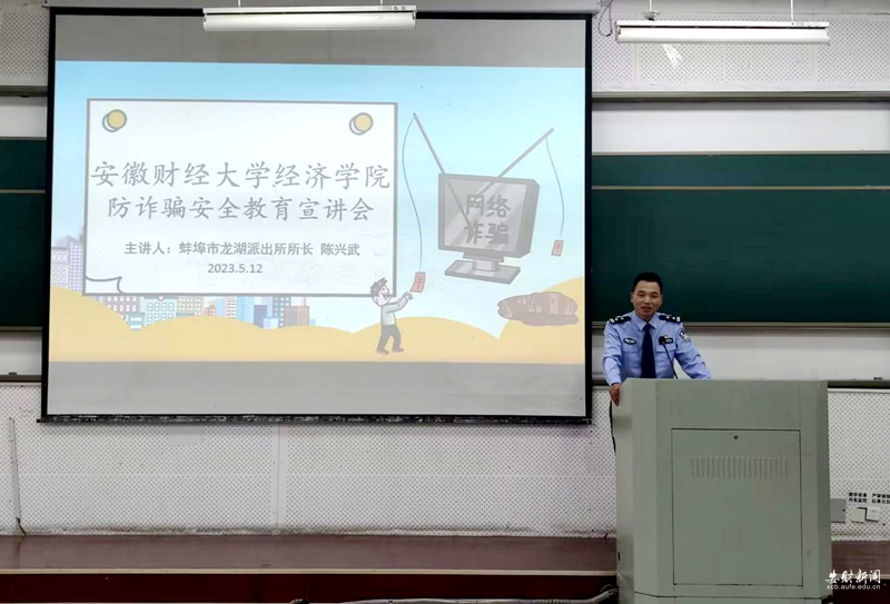 为进一步加强防范电信网络诈骗宣传力度,营造“全员反诈、全院防诈”的浓厚氛围,经济学院近日邀请龙湖派出所所长陈兴武作“防诈骗安全教育宣讲会”。全体专职辅导员、各班级学生代表参加。学院党委副书记程修刚主持宣讲会。