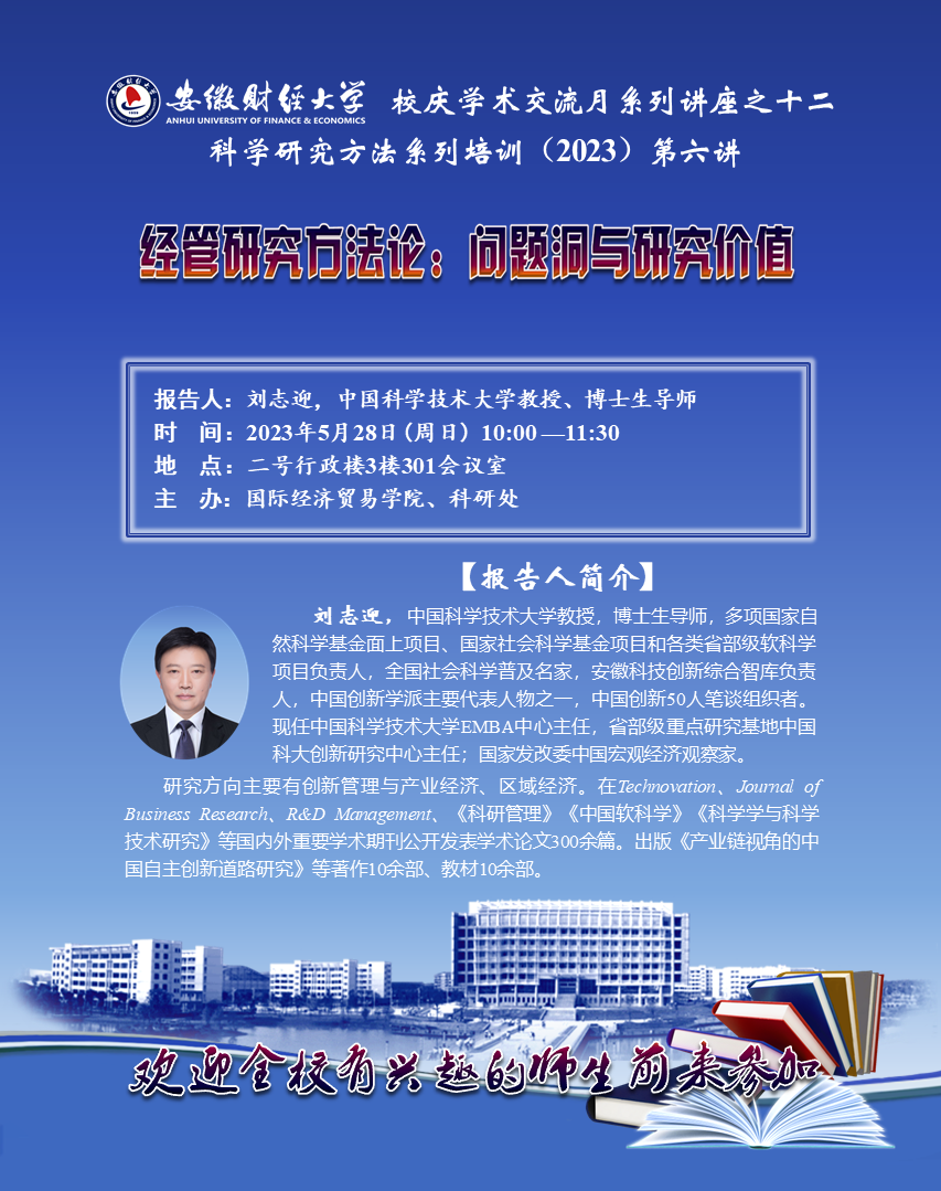 2023年5月28日:【校庆学术交流月系列讲座之十二】【科学研究方法系列培训(2023)第六讲】经管研究方法论:问题洞与研究价值