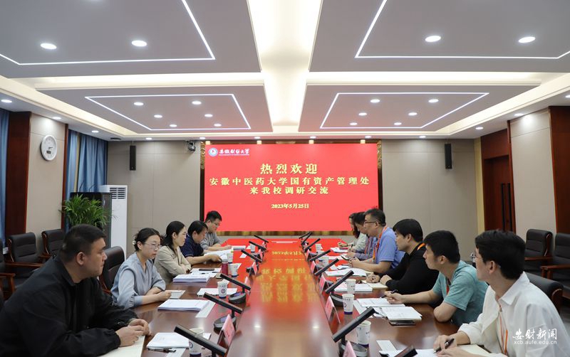 5月25日下午,安徽中医药大学国有资产管理处处长王红松、副处长沈明一行来我校调研交流。我校资产管理处处长孙小龙、副处长王帅及相关科室同志陪同座谈交流。会议由孙小龙主持。