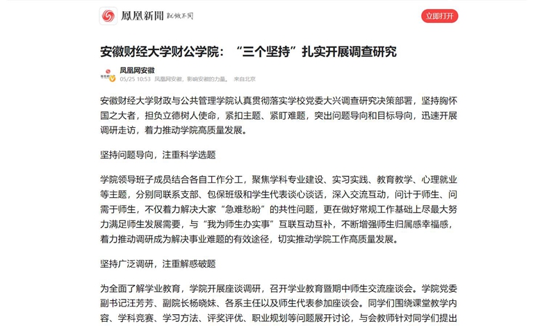 5月25日,人民网、凤凰网以《乐竞在线注册财公学院:“三个坚持”扎实开展调查研究》为题,报道我校财公学院认真贯彻落实学校党委大兴调查研究决策部署,坚持胸怀国之大者,担负立德树人使命,紧扣主题、紧盯难题,突出问题导向和目标导向,迅速开展调研走访,着力推动学院高质量发展。