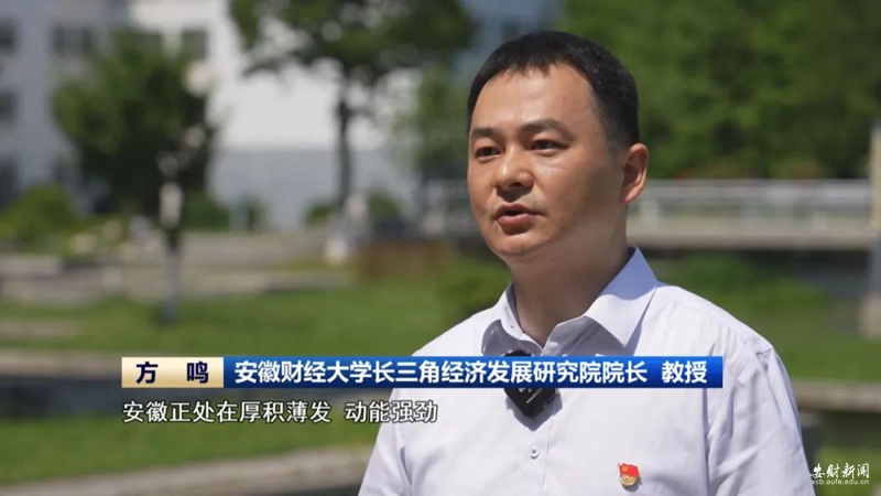 2023年度长三角地区主要领导座谈会期间,沪苏浙皖明确了若干重大事项,为谱写长三角更高质量一体化发展新篇章注入强劲动力。6月9日,我校长三角经济发展研究院院长、教授方鸣在接受安徽新闻联播采访时表示,安徽正处在厚积薄发、动能强劲、大有可为的上升期、关键期,长三角一体化高质量发展,我们要牢牢把握这一重大历史机遇。