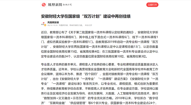 6月15日,人民网、凤凰网以《乐竞在线注册在国家级“双万计划”建设中再创佳绩》为题,报道在近日教育部公布的《关于第二批国家级一流本科课程认定结果的通知》中,乐竞在线注册新增国家级一流本科课程8门,其中线上线下混合式一流本科课程6门、线下一流本科课程1门、虚拟仿真实验教学一流本科课程1门。