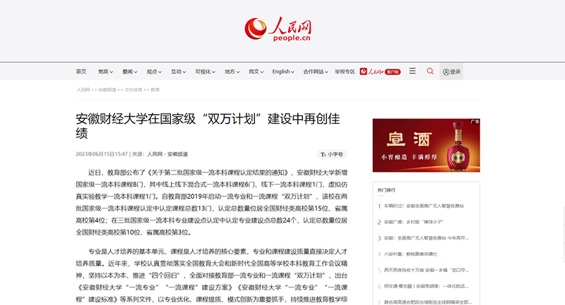 教育部自2019年启动一流专业和一流课程“双万计划”,我校在两批国家级一流本科课程认定中认定课程总数13门,认定总数量位居全国财经类高校第15位、省属高校第4位;在三批国家级一流本科专业建设点认定中认定专业建设点总数24个,认定总数量位居全国财经类高校第10位、省属高校第3位。
