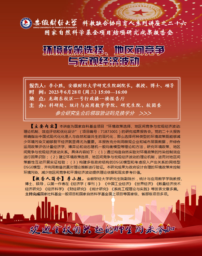 2023年6月28日:【科教融合协同育人系列讲座之二十六】环境政策选择、地区间竞争 与宏观经济波动