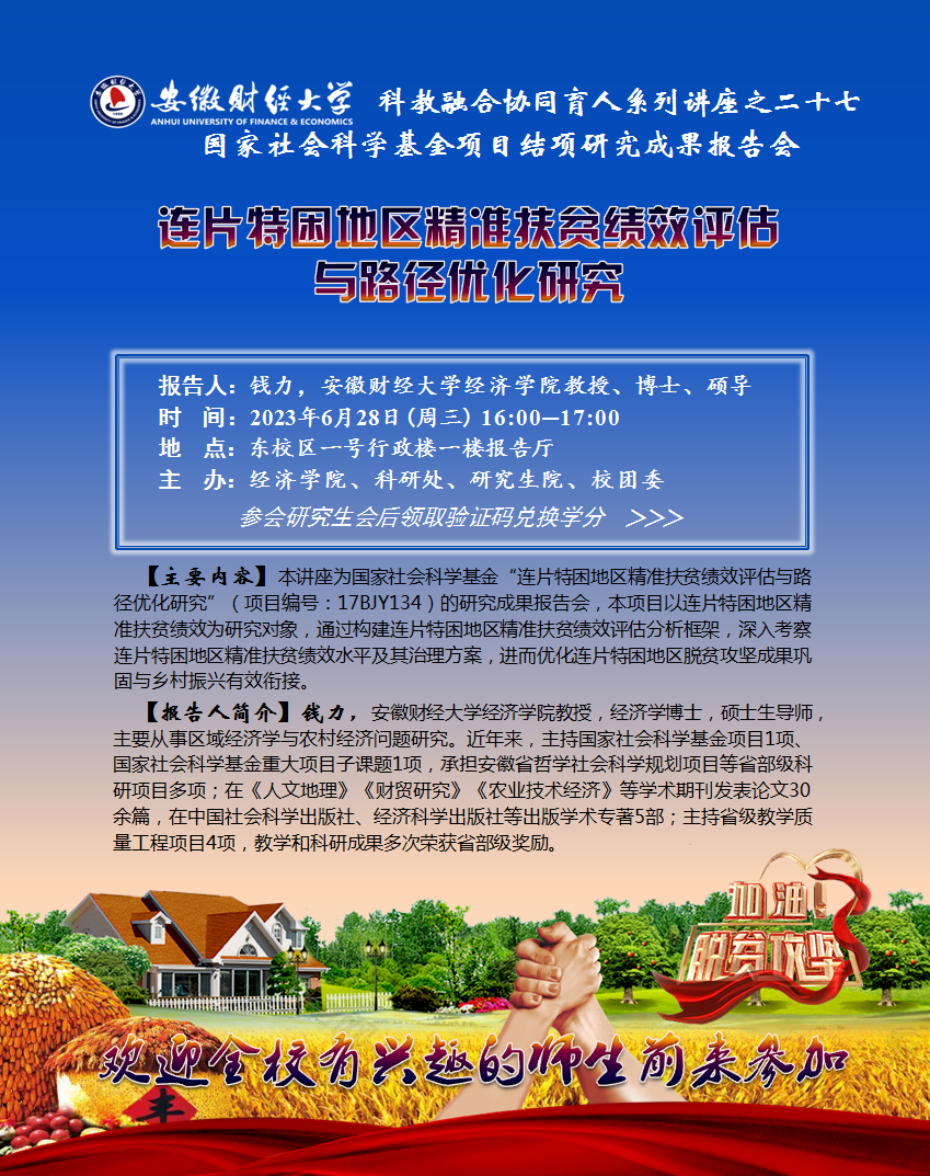 2023年6月28日:【科教融合协同育人系列讲座之二十七】连片特困地区精准扶贫绩效评估与路径优化研究