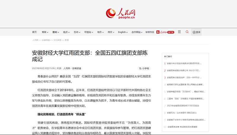 6月30日,人民网以《乐竞在线注册红雨团支部:全国五四红旗团支部炼成记》为题,报道我校国际经济贸易学院红雨团支部始终坚持以习近平新时代中国特色社会主义思想为指导,主动融入党的建设整体格局,积极肩负党的助手和后备军职责,持续发挥青年生力军与突击队作用,持续引领团员青年在高质量发展新征程中绽放光彩。