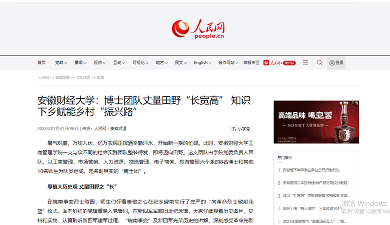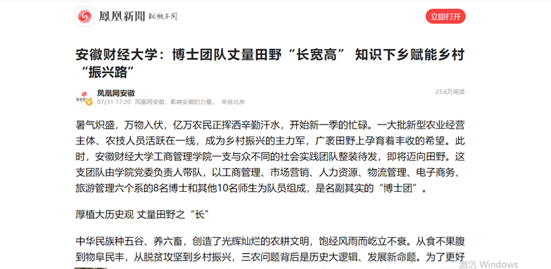 7月31日,人民网、凤凰网以《乐竞在线注册:博士团队丈量田野“长宽高” 知识下乡赋能乡村“振兴路”》为题,报道我校工商管理学院博士团队深入泾县琴溪镇开展调查研究,并签订了党建共建协议,与琴溪镇同频共振、同题共答,共促乡村发展。