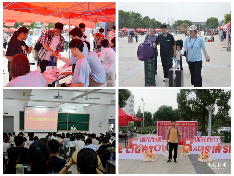 除了特色展台,学院还在广学楼前布置了迎新展板,“追光而遇 沐光而行”几个大字映入眼帘,旭日初升的太阳就如刚刚入学的新生们。新生和家长观看后纷纷表示很温馨,对加入管工这个大家庭充满欣喜和期待。