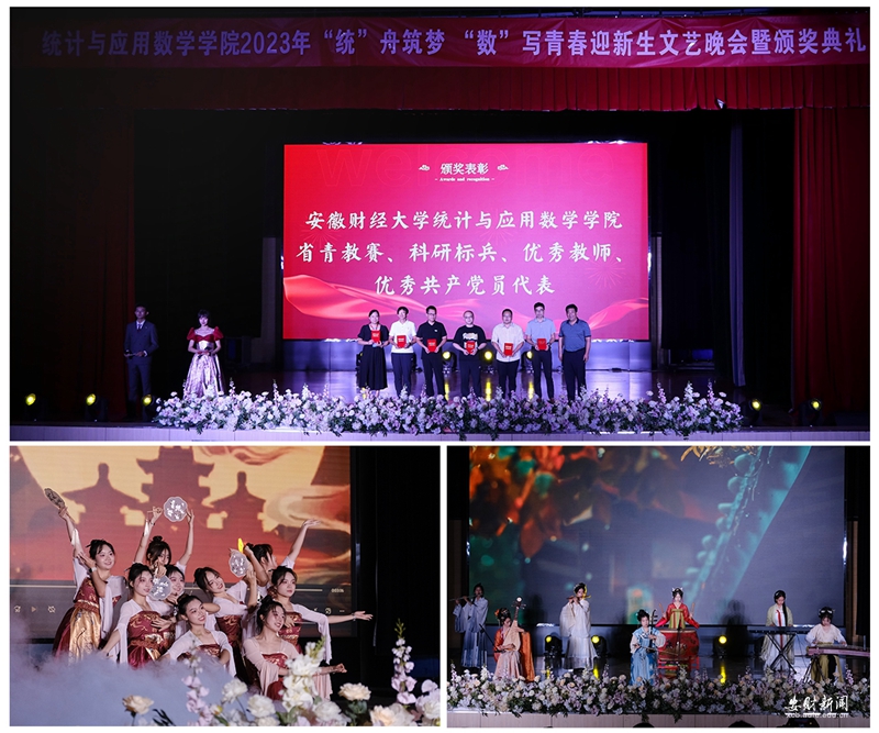 晚会穿插了颁奖环节。新生数学、英语摸底考试前五名,学院首届十佳寝室长,“挑战杯”及“挑战杯”红色专项活动获奖者,校标兵和优秀学生,学科竞赛获奖者……让大家看到了统数学子在各项活动中取得的优异成绩。安徽省第六届高校青年教师教学竞赛一等奖,校科研标兵、优秀教师、优秀教育工作者和优秀共产党员……丰富多样的奖项展现了统数学院的师资队伍、科研水平以及学院持续向好的整体发展态势。