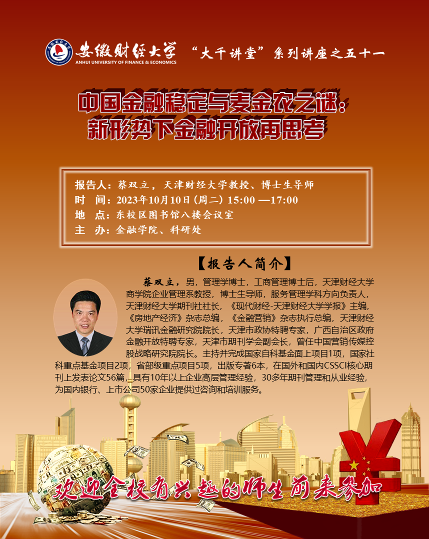 2023年10月10日:【“大千讲堂”系列讲座之五十一】中国金融稳定与麦金农之谜:新形势下金融开放再思考