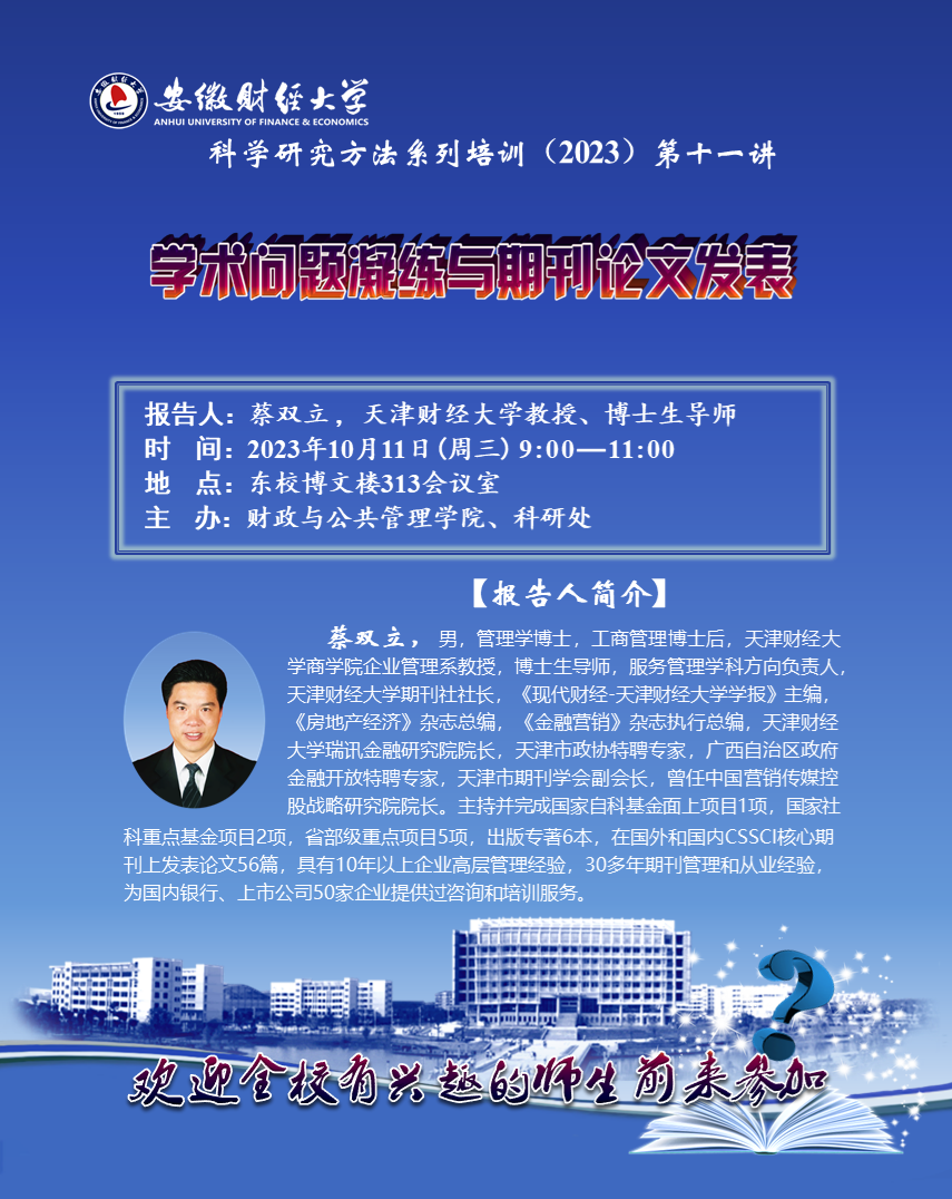 2023年10月11日:【科学研究方法系列培训(2023)第十一讲】学术问题凝练与期刊论文发表