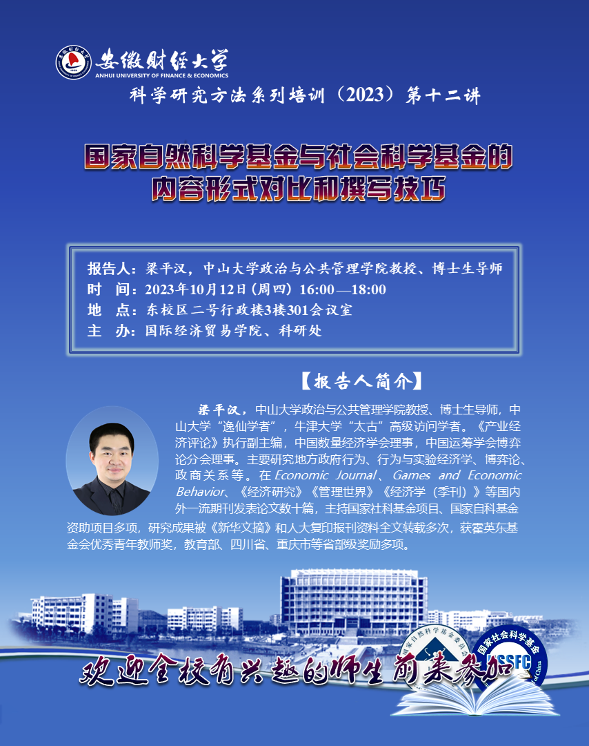 2023年10月12日:【科学研究方法系列培训(2023)第十二讲】国家自然科学基金与社会科学基金的内容形式对比和撰写技巧
