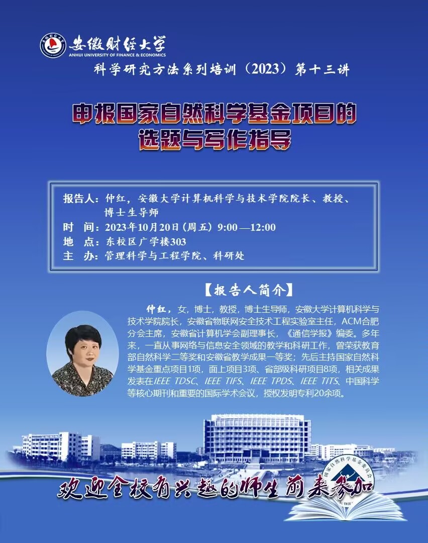 2023年10月20日:【科学研究方法系列培训(2023)第十三讲】申报国家自然科学基金项目的选题与写作指导