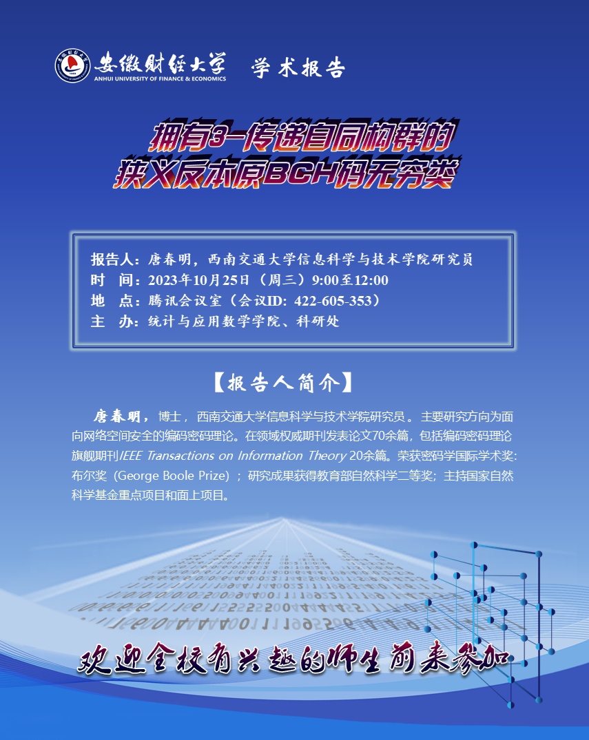 2023年10月25日:拥有3-传递自同构群的狭义反本原BCH码无穷类