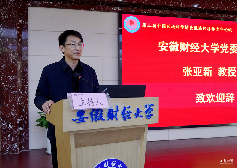 张亚新在致辞中对长期以来关心支持安财建设发展的各界人士表示衷心感谢,对莅临此次研讨会的各位专家学者表示热烈欢迎。他指出,近年来,学校贯彻落实全国教育大会和高校思想政治工作会议精神,实施“安财新经管”和“走出去、建平台、上水平”两大发展战略,在人才培养、学科建设、科学研究、社会服务、党建工作等方面取得了长足的进步。学校成为安徽省首批“三全育人”综合改革试点高校,知识、能力、素质、人格“四位一体”人才培养体系建设成效日益显现。他表示,青年是社会发展的生力军,也是科研事业的未来,希望与会人员以此次论坛为契机,深入交流、碰撞思想火花,激发出更多创新理念,搭建好学术道路上的发展桥梁,为推动区域经济学的发展贡献自己的力量。