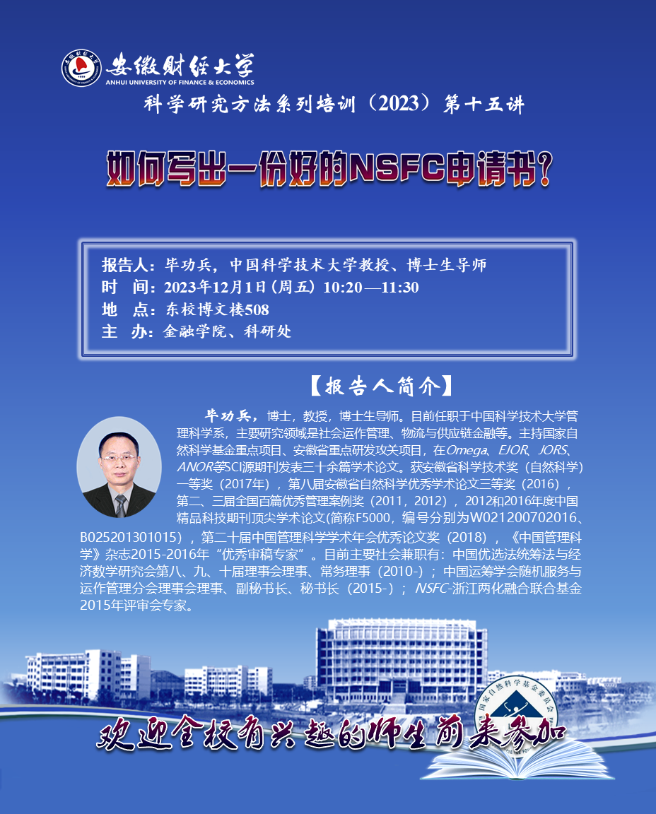 2023年12月1日:【科学研究方法系列培训(2023)第十五讲】如何写出一份好的NSFC申请书?