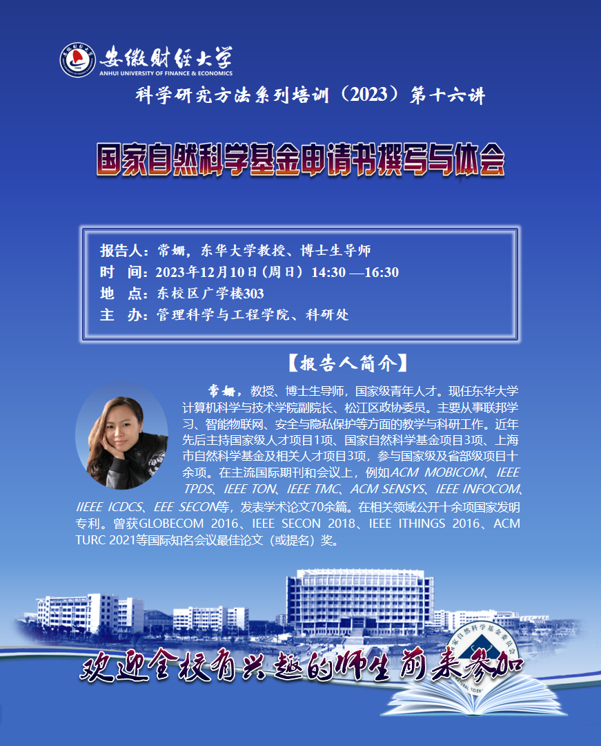 2023年12月10日:【科学研究方法系列培训(2023)第十六讲】国家自然科学基金申请书撰写与体会