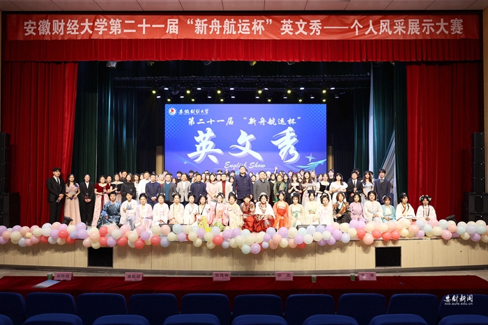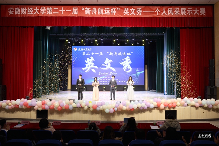 12月12日晚,由校团委和国贸学院联合举办的第二十一届“新舟航运杯”英文秀个人风采展示大赛在龙湖东校区艺术楼报告厅举行。校团委书记杜斌、江苏新舟航运有限公司董事长周磊、国贸学院党政班子成员、教师代表及学生近800人观看比赛。
