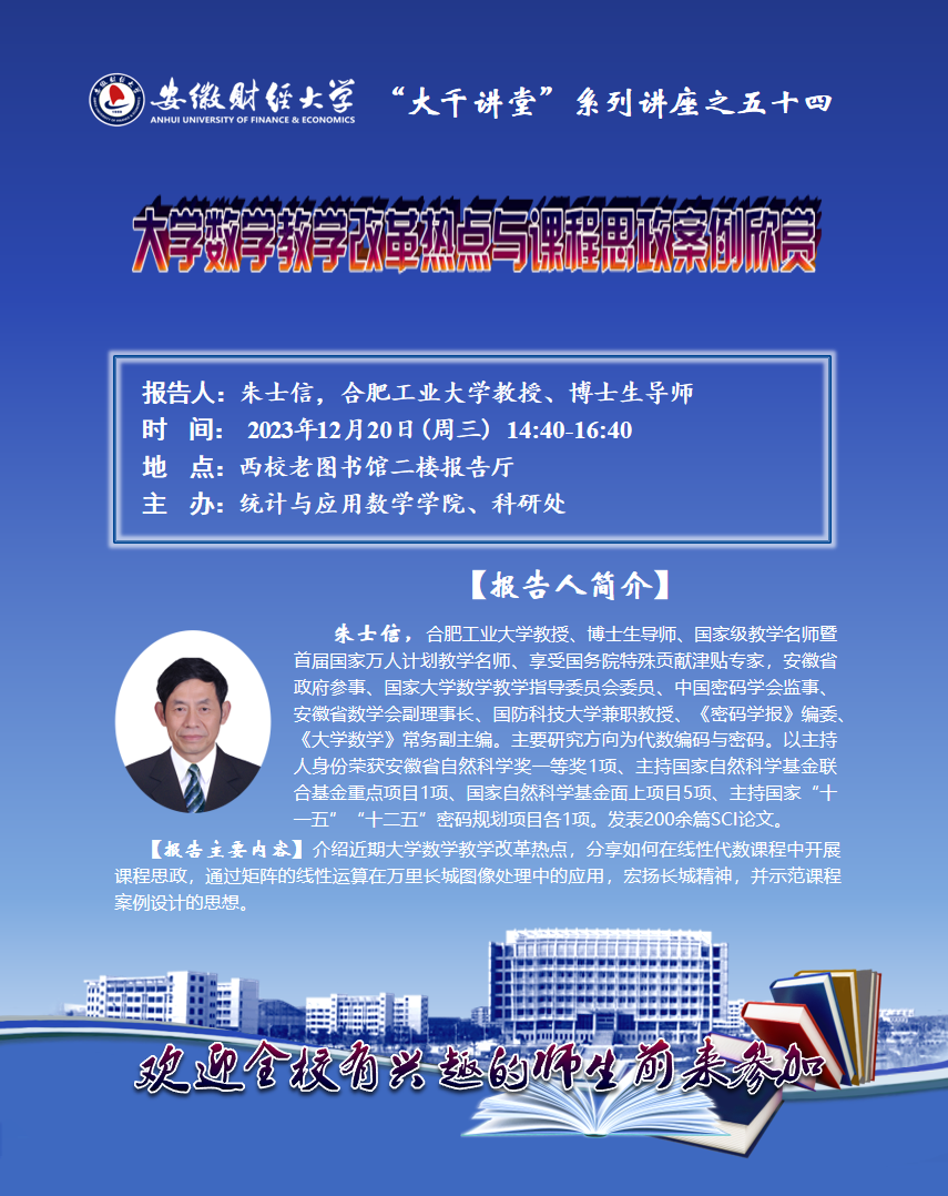 2023年12月20日:【“大千讲堂”系列讲座之五十四】大学数学教学改革热点与课程思政案例欣赏