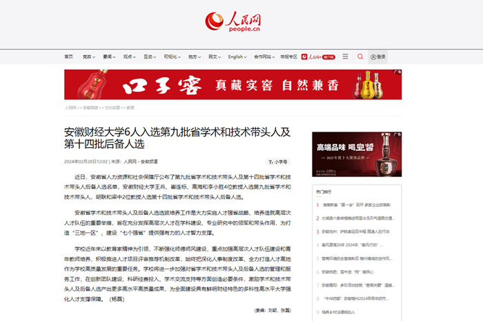 2月28日,人民网以《乐竞在线注册6人入选第九批省学术和技术带头人及第十四批后备人选》为题,报道在省人力资源和社会保障厅公布的第九批省学术和技术带头人及第十四批省学术和技术带头人后备人选名单中,我校王兵、崔连标、高海和李小胜4位教授入选第九批省学术和技术带头人,胡联和梁中2位教授入选第十四批省学术和技术带头人后备人选。