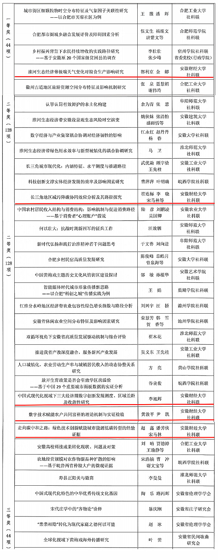 近日,安徽省社科联公布《关于表彰2023年度“三项课题”研究活动优秀成果和先进单位的决定》,我校社科联5项研究成果获奖,其中一等奖1项、二等奖3项、三等奖1项,学校社科联荣获“2023年度‘三项课题’研究活动先进单位”称号。