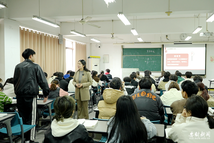 3月18日上午,由经济学院史晓红老师主讲的第一场课程思政示范课展示在龙湖东校区明德楼402教室举行,课程内容为《马克思主义政治经济学》中的“人口规模巨大的中国式现代化”。史晓红熟练应用多媒体信息技术,巧妙融合多种教学方法,从坚持中国共产党的领导、人口规模巨大的首要特征、以人民为中心的发展理念、人口压力与红利四个方面讲授课程内容,引导学生关心时政、关注热点,牢固树立以中国式现代化推进中华民族伟大复兴中国梦的奋斗理想。