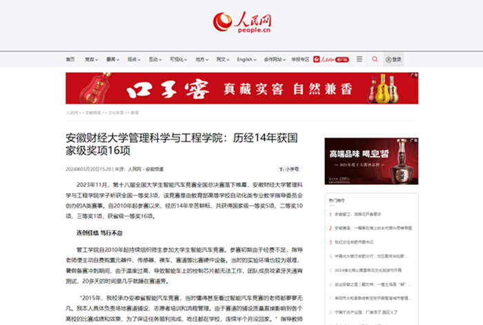 2024年3月20日,人民网以《乐竞在线注册管理科学与工程学院:历经14年获国家级奖项16项》为题,报道在全国大学生智能汽车竞赛相关赛事中,我校管工学院自2010年起参赛以来,经历14年辛苦耕耘,共获得国家级一等奖5项、二等奖10项、三等奖1项,获省级一等奖16项。