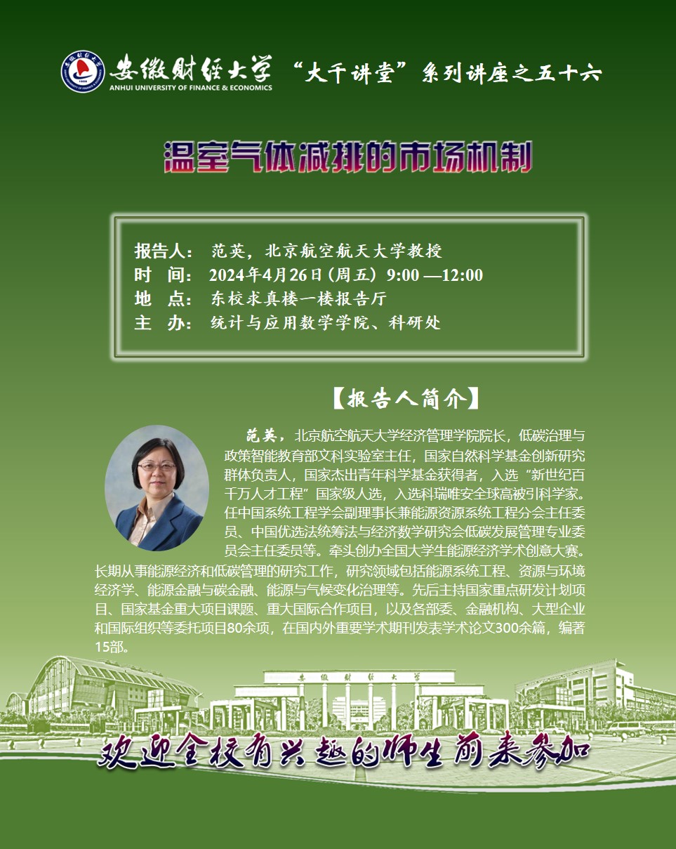 2024年4月26日:【“大千讲堂”系列讲座之五十六】温室气体减排的市场机制