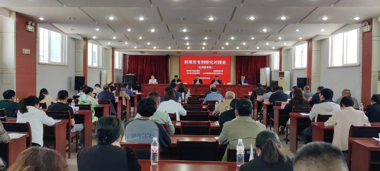 张大洋在致辞中,首先对学校整体发展情况及近年来在科学研究与社会服务方面取得的科研业绩进行介绍。同时,对学校近年来通过进一步凝练学科发展方向、推动学科交叉融合、组建高水平科研团队、构建高效协同创新平台、推进科研成果转移转化等方面的做法进行详细阐述。他希望通过此次专利转化对接会,推动科研成果与企业需求精准对接,推进科技成果在五河县落地生根、开花结果,有效实现校地企资源共享、优势互补、互利共赢,共同为五河县及蚌埠市的经济社会发展注入强大动能。