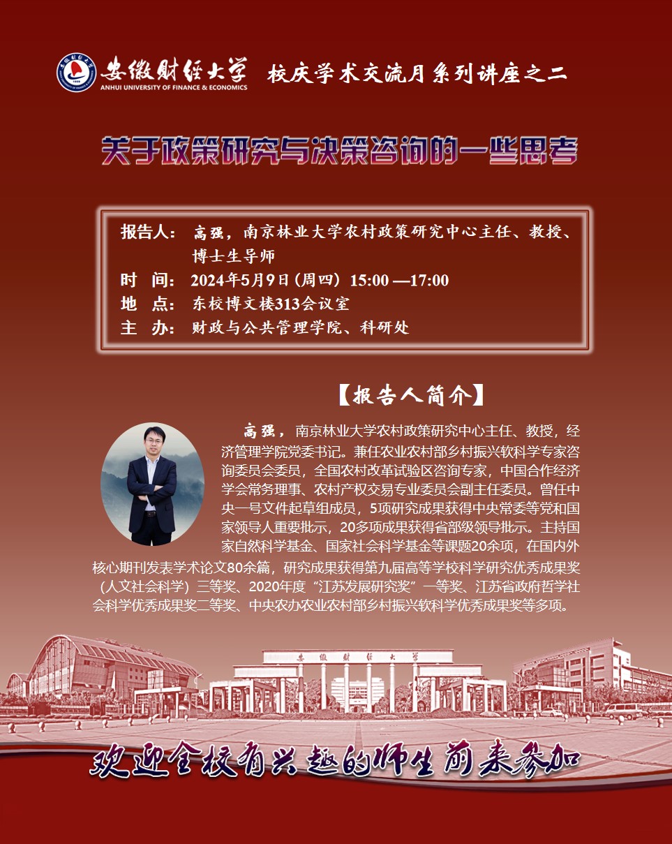 2024年5月9日:【校庆学术交流月系列讲座之二】关于政策研究与决策咨询的一些思考