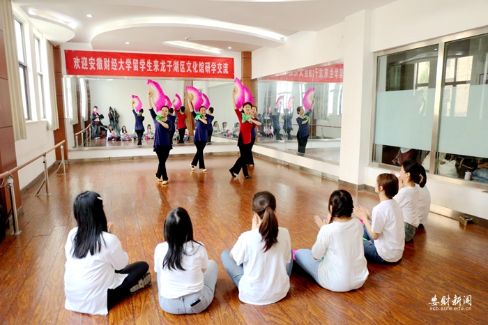为进一步促进留学生了解和感受中华优秀传统文化,近日,国际交流中心副主任张子前带领留学生代表赴蚌埠市龙子湖区文化馆参加花鼓灯研学交流活动。
