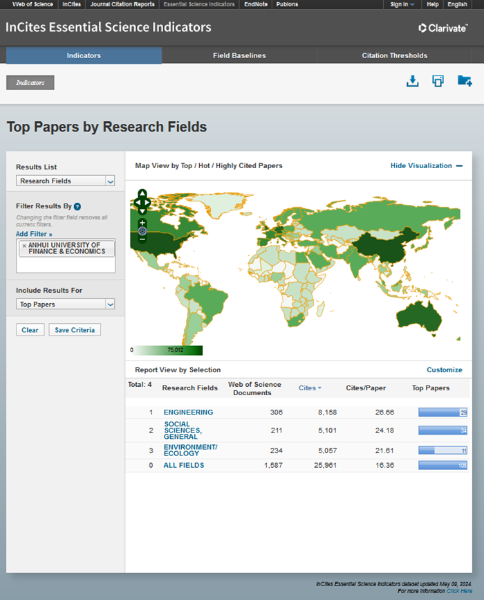 Essential Science Indicators(基本科学指标,简称ESI)是由世界著名的学术信息出版机构美国科技信息所(ISI)于2001年推出的衡量科学研究绩效、跟踪科学发展趋势的基本分析评价工具,是基于科睿唯安公司旗下Web of Science(SCIE/SSCI)所收录的全球12000多种学术期刊的1000多万条文献记录(文献类型为Article和Review)而建立的计量分析数据库。