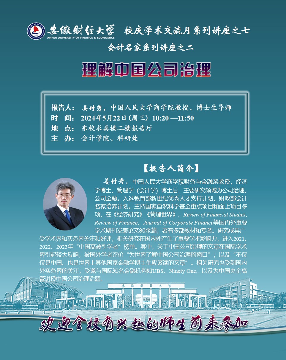 2024年5月22日:【校庆学术交流月系列讲座之七】理解中国公司治理