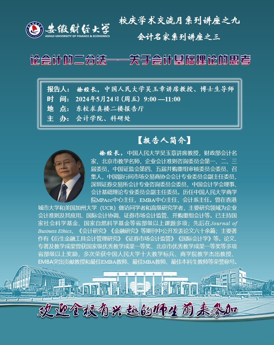 2024年5月24日:【校庆学术交流月系列讲座之九】论会计的二分法——关于会计基础理论的思考