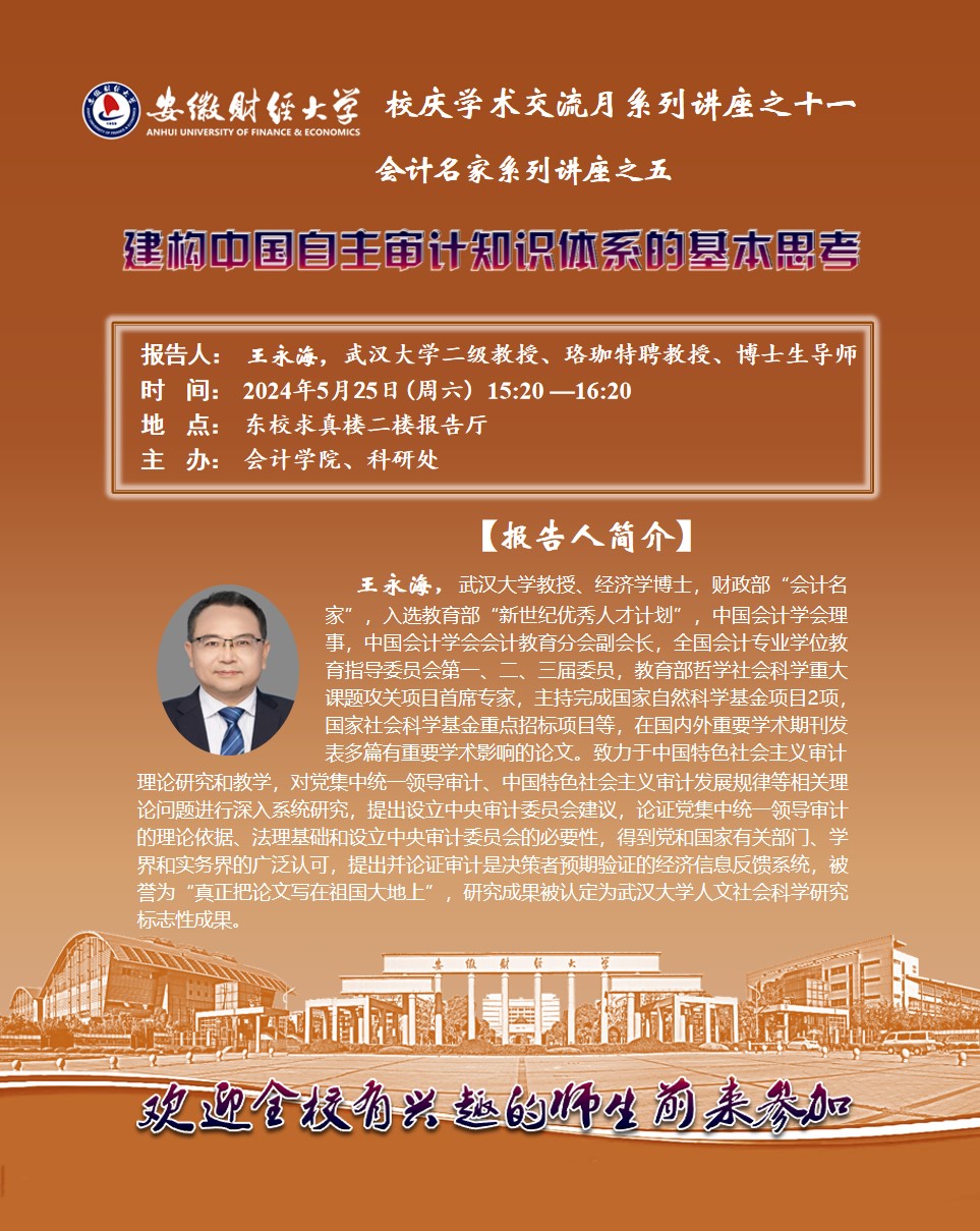 2024年5月25日:【校庆学术交流月系列讲座之十一】建构中国自主审计知识体系的基本思考