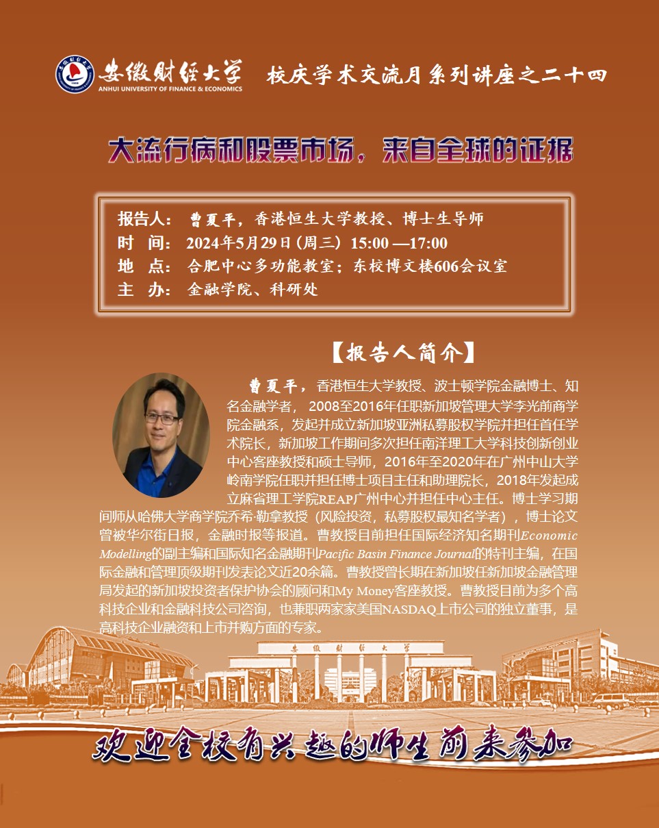 2024年5月29日:【校庆学术交流月系列讲座之二十四】大流行病和股票市场,来自全球的证据