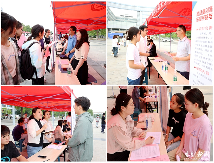 双选会现场气氛热烈、秩序井然。“真是想不到学校的首届科创双选会活动能够吸引来这么多不同学科背景的优秀学生,我真想把他们都纳入到我的团队中来。”活动开始不久,工商管理学院李永发教授的“新增价值研究团队”已经收到了近30份简历,火爆的报名现场让原本只准备招募8名学生的李教授又惊又喜。“全球价值链创新研究团队”负责人、国际经济贸易学院副院长陈旭表示,科创双选会搭建了师生交流互动平台,通过面对面交谈,老师们能够遴选出一批科创兴趣浓厚、科创潜力巨大的学生,希望学校能够举办更多科创活动。金融学院吴昕桐同学在与心仪的项目团队“配对”成功后兴奋的表情溢于言表,接下来她将和团队成员们一起准备明年的“挑战杯”比赛。