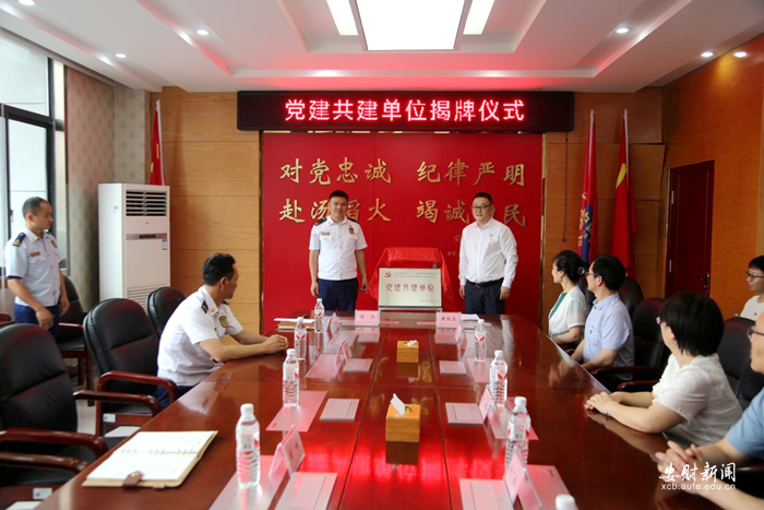签约仪式上,双方代表共同签署党建共建协议书,并为党建共建单位揭牌。随后,双方分别介绍了所在单位的党组织情况、党建工作举措、亮点与特色工作并就推进和加强党组织联建、工作资源互享等进行了交流。黄铁流表示,要充分发挥双方在人才、阵地、品牌、服务等方面的优势,以党建工作为引领,以共建共享为基础,以合作共享为目标,创新党建活动载体,丰富党建活动内容,联合开展主题党日、主题党课及“四季说廉”等主题活动,加强双方文化共建,增强党建工作实效。陈杰表示,将聚焦消防安全宣传与预防,整合专业资源、育人资源等,定期合作开展师生消防安全教育讲座、消防安全隐患排查、消防类社会实践等,优化和丰富党建工作机制与载体,不断促进党的政治功能、组织功能与安全稳定保障工作的有机融合。