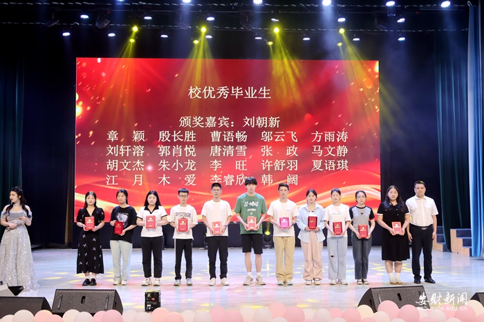 在颁奖环节,与会领导和老师分别为省优秀毕业生、校优秀毕业生、校三好学生标兵、院三好学生颁奖。
