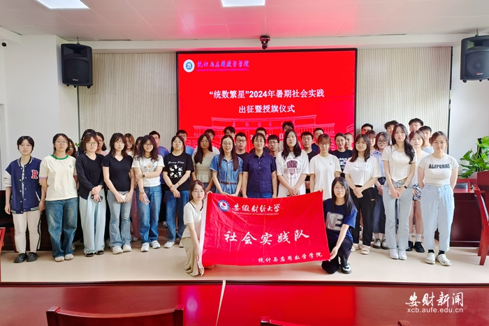 6月20日中午,统计与应用数学学院在西校区图书馆三楼学术报告厅举行2024年暑期社会实践出征暨授旗仪式。院党委副书记张楠、团学负责老师施晓梅、2024年100余支暑期社会实践队队长及部分队员参加了仪式。