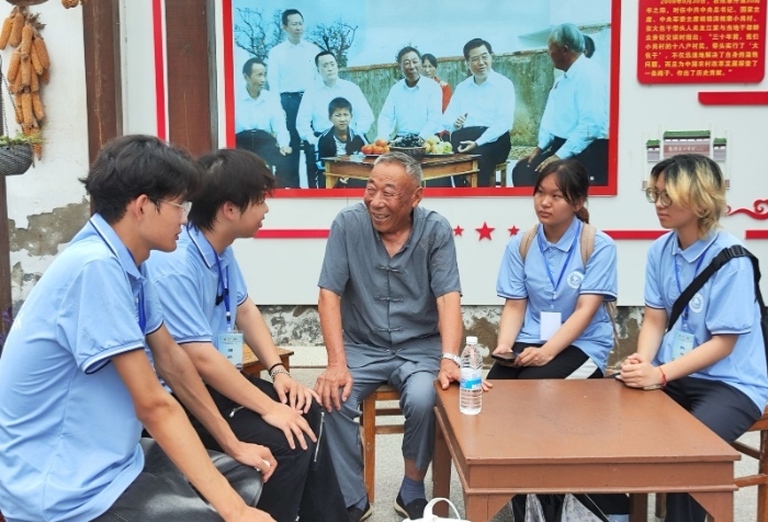 15日下午,红潮探源阵线队全体成员怀着期待与敬重之情,来到了大包干带头人之一的关友江老人家中。作为曾与沈浩同志并肩作战的同志,关友江以与青年学生们共同回顾了过去的峥嵘岁月,对同学们心中的疑惑进行了详细的解答,进一步加深了队员们对红色教育的认识。
