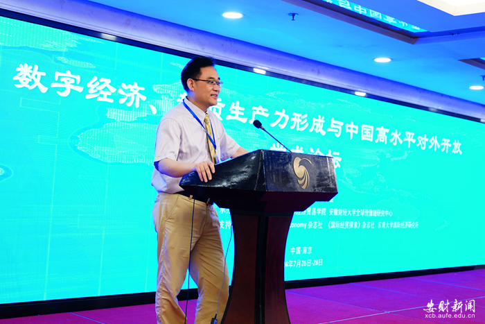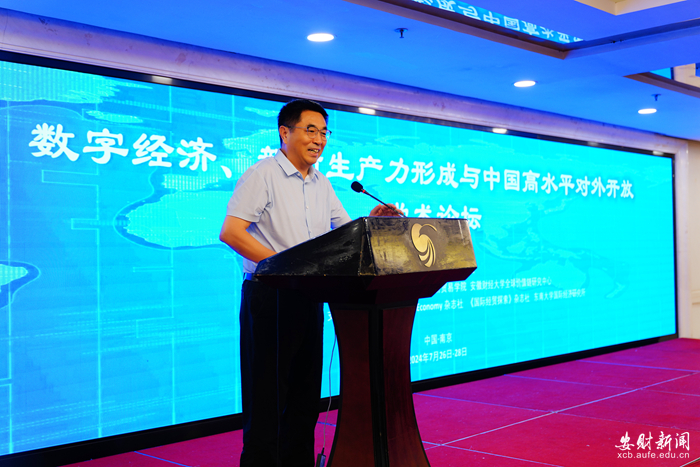 7月26日至28日,乐竞在线注册与安徽省国际贸易学会共同主办的“数字经济、新质生产力形成与中国高水平对外开放”学术论坛在南京市成功举办。江苏省社科联党组书记、常务副主席张新科,辽宁大学党委副书记、校长余淼杰(线上),南京师范大学党委副书记、校长华桂宏,乐竞在线注册党委常委、副校长赵晓明,安徽省国际贸易学会会长冯德连,复旦大学经济学院院长张军出席论坛。东南大学社科处、China & World Economy杂志社、我校国际经济与贸易学院相关负责人,全国30余所高等院校的90余位专家学者参加论坛。论坛开幕式由东南大学国际经济研究所所长邱斌教授主持。
