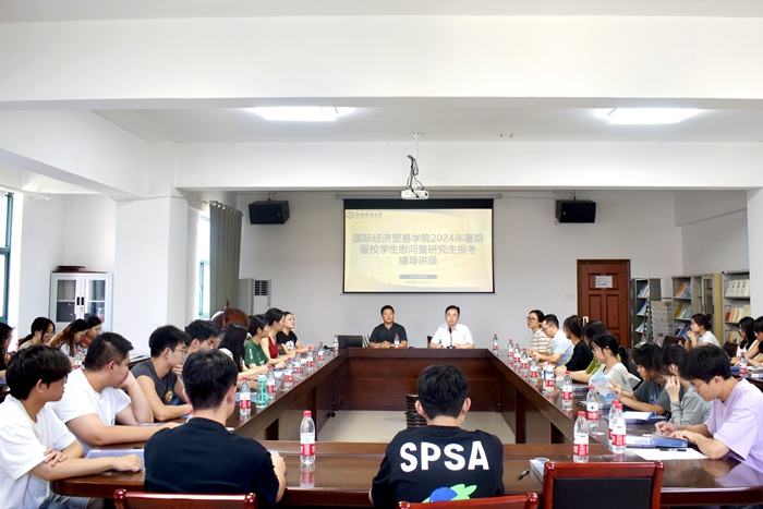 夏日炎炎暑期盛,为深入了解暑假留校学生的思想、学习和生活状况,更好地帮助即将面临考研选择的本科生们明确方向,8月7日上午,国际经济贸易学院开展了暑期留校学生研究生报考辅导讲座暨慰问活动。学院党委书记胡尊亮、院长张廷海等党政领导班子成员、研究生院招生办公室主任孙娜以及暑期留校考研学生参加活动。活动分别由周经副院长和刘梦媛副书记主持。