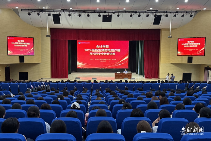 为增强2024级新生对电信网络诈骗的认识,守护新生财产安全,树立防范意识,合理应对诈骗活动,保护自身利益,9月11日下午,会计学院在东校区艺术楼报告厅举办2024级新生预防电信诈骗及校园安全教育讲座。学院邀请了龙子湖区公安分局指挥中心主任陈兴武与新生深入交流,学院党委副书记项鑫,团委书记王曹阳,全院2024级新生及辅导员参加了本次会议。会议由项鑫主持。