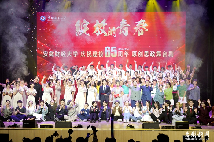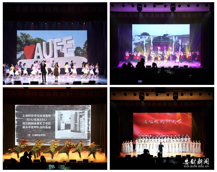 演出是以我校研究生支教团成员在全国五四红旗团支部“红雨团支部”开展志愿服务和“千家万福”团队助力乡村振兴的经历为主线,以舞台剧形式再现了建校之初上海财经大学、东北财经大学等单位援建事迹,以及学校优秀校友、全国最美法官魏晶晶忠诚尽责、甘于奉献等感人事迹,从不同角度讲述一代代安财人胸怀家国、坚守岗位、敢于创新的奋斗故事,为广大师生献上一场丰盛的艺术盛宴和一堂生动的“思政大课”。