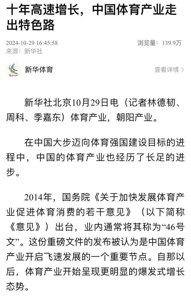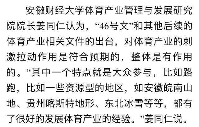 10月29日,新华社刊发了题为《十年高速增长,中国体育产业走出特色路》的文章,我校体育产业管理与发展研究院院长姜同仁在接受采访时表示,国务院体育产业“46号文”和其他后续的体育产业相关文件的出台,对体育产业的刺激拉动作用符合预期。面对高质量发展的新诉求,姜同仁认为应加快建设适合国情的中国式现代化体育产业体系,抓紧补短板、锻长板,全面提升产业体系现代化水平,成为推动体育产业高质量发展、达成支柱性产业预期目标的方向;面对新发展阶段,他总结认为中国体育产业具有经济性、嵌入性、融入性、精神性的发展特点。