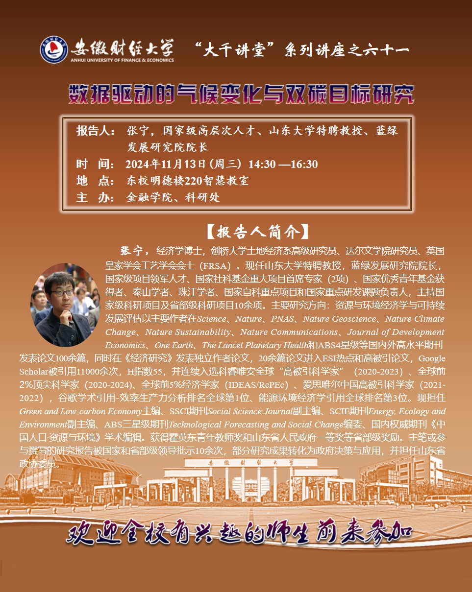 2024年11月13日:【“大千讲堂”系列讲座之六十一】数据驱动的气候变化与双碳目标研究
