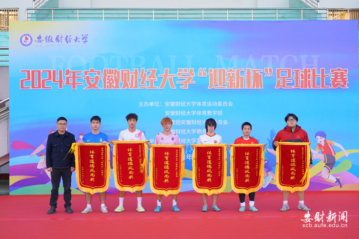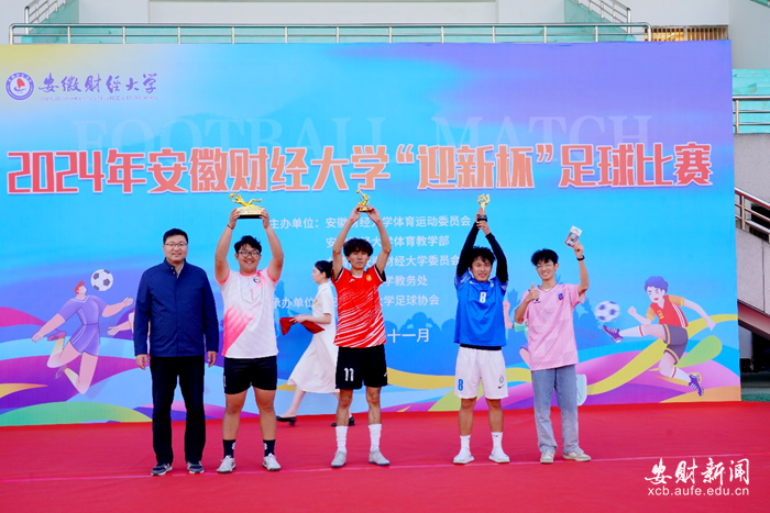 在青春飞扬的绿茵场上,来自全校各学院的9支精英队伍、144名运动员们为全校师生带来了一场难忘的足球盛宴。从小组赛开始,竞争就呈现出白热化状态,球员们在场上积极拼抢、默契配合,每一次传球、每一次射门都牵动着观众的心。赛场边,啦啦队的呐喊助威声此起彼伏,五彩斑斓的旗帜挥舞,营造出热烈非凡的氛围。金融学院的队员们在比赛中展现出了超强的实力和坚韧不拔的斗志,他们的战术执行严谨,进攻犀利如剑,防守固若金汤,球员们巧妙的通过短传渗透和快速的边中路结合,一次次撕开对手防线,最终获得冠军。财政与公共管理学院球员身体素质出色,奔跑积极,无论是进攻时的组织调度,还是防守时的顽强阻击,都彰显出极高的战术素养,最终获得亚军。管理科学与工程学院表现可圈可点,他们的进攻富有激情,防守也极具韧性,通过积极的拼抢创造机会,在比赛中不断成长和进步,最终获得季军。金融学院、国际经济贸易学院、管理科学与工程学院、会计学院、财政与公共管理学院、文传联队6支队伍获得“体育道德风尚奖”。来自财政与公共管理学院的迪力亚尔脱颖而出,成为“最佳射手”;金融学院陶洋凭借决赛中的制胜进球获得“最佳球员”;国际经济贸易学院赵褀晖获得“最佳门将”;管理科学与工程学院周涛获得“最佳裁判”称号。